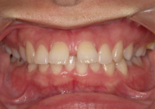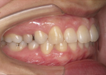 症状 前歯が深く咬み込んで、上の前歯が飛び出してきています。