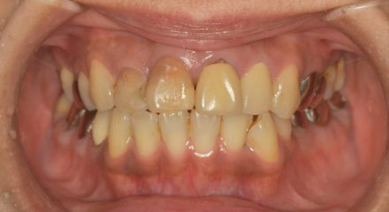 | 症状 | 前歯が変色していて気になる。 歯肉がさがってきた。 |