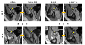 顎関節に対する治療を行ったことで、左側の顎関節の関節円板のずれが改善したことがわかります。