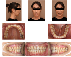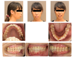 | 治療法 | 上顎前歯のブリッジを外す マルチブラケット装置にてアライメント(上顎のみリンガルブラケット装着のハーフリンガル) 顎関節治療のための付加的装置を併用しつつ咬合の確立 |