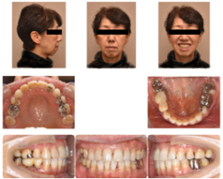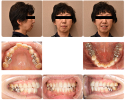 | 治療法 | スプリントを装着 偏側部分拡大床を装着 マルチブラケット装置にてアライメント 矯正用アンカースクリューを埋入 付加的装置を使用しつつ咬合の確立 |