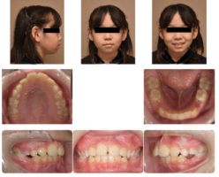 | 症状 | 上の前歯の前突と、それに起因する口の閉じにくさ 左口角の挙上 全身写真から、首が前に出ている、頭が右側を向いている 顎関節症 唇を咬む癖、頬杖、舌癖がある |