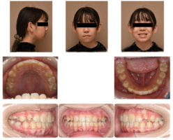 現在は横の歯の生え変わりの時期のため、上下の歯の間にスペースがありますが、前歯の前突感と口元の突出は改善されました。