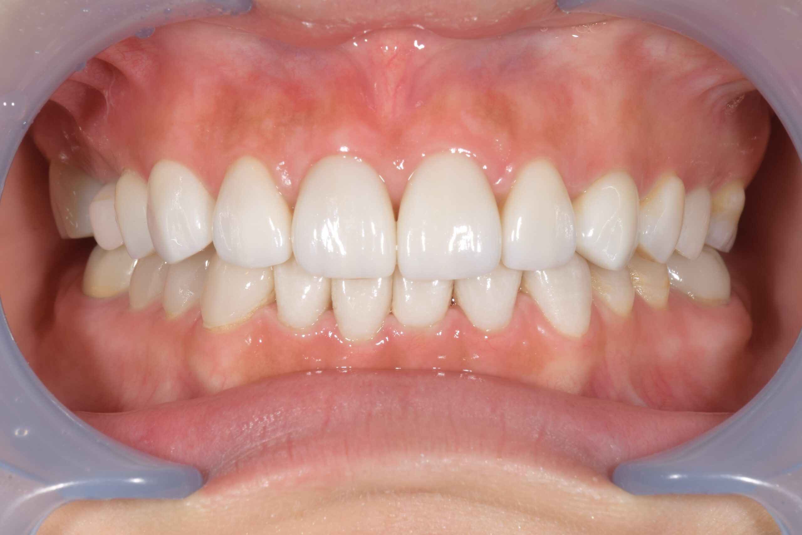 | 治療法 | 歯周基本治療 スタビライゼーションスプリント&プロビジョナルレストレーションによる下顎位の修正 臼歯部歯冠修復 前歯部ポーセレンラミネートべニア |